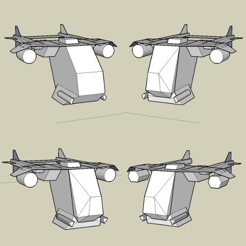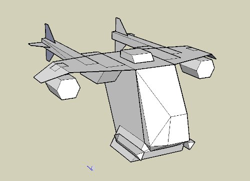 The idea behind the design is that it’s a single seat attack craft VTOL capable, while packing a significant punch to be a credible threat to more heavily armored tanks and vehicles. Two light weapon mounts are present on the lower sides of the model, I’ll texture these as MG ‘s and possibly small lasers as an alternate. Under each wing are some small 5-6 shot rocket launches which can be filled with anti-vechile rounds.