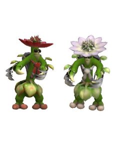Next up came the plant inhabitants of the planet, this was slightly more difficult as spore is configured for more your normal kind of animal rather than your living tree. But I looked around at what had been done in Sporepedia and then Built up my own people using bits from existing critters as inspiration. I ended up with quiet a few different variates of plant people: Cactus, Daisy, Mushroom, Palm and Some odd flower variates. Some of these I used for specific main characters and others were just to provide populace variety. Few more pictures: