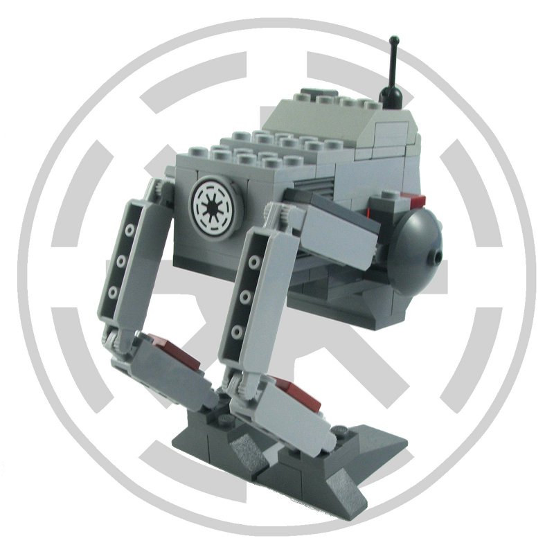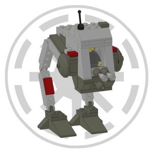Continuing on with my clone army next up is my version of an AT-PT . I basically needed a small light walker, all the existing Lego sets are quiet big, bulky and tall at least for wargamming. Due to line of sight rules in most games and the bulkiness of lego I try to keep my models thinned down so I suffer as smaller a disadvantage as possible when playing against a regular lead/pewter/paper army. After checking through Wookepedia under AT’s it seemed the AT-PT would fit the bill nicely. Not wanting to reinvent the wheel I had a look around at what other Lego AT-PT’s had been created. Saber-Scorpion had created  a rather nice AT-PT and after looking at the pictures of his design and comparing it to the wookepedia article I designed my own AT-PT, incorporating some elements from saber’s design and some of my own:
