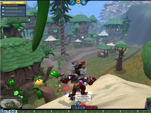 While my wife was unwell I played some Spore and picked up the two expansion packs Creepy and Cute and Galactic Adventures (both went on sale for half price). Once you get a stable install running, by that I mean one that only crashes a few times a week the game isn’t to bad to play. The strongest point of the game is the ability to use the predefined library of shapes and textures to create unique creatures, buildings and vehicles. The Galactic Adventures (GA) expansion pack adds the ability to put together rather simple first person adventures and I was assembling an adventure in GA for Annette to play while sick but she recovered before I finished.  I did sink a  significant amount of time into developing the adventure so thought it deserved it’s own blog post.