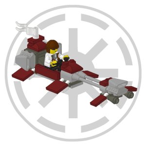 I had enough parts to build 3 and I’m a few bits short for a 4th. At this stage they all have different coloured windshields I wanted all red ones but that part in red seems to be another rarity so I have a blue trans and grey trans version. When gaming I just stick a different colored tile to the top to help id each one. As with the Speeder Bikes I did an action shot in GIMP: