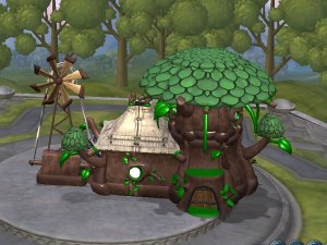 That’s a brief overview, first up I designed the plant city and it’s buildings. I wanted these to look like tree’s as if they had been grown to the required shape. I checked through the Sporepedia and couldn’t find anything suitable so designed up some of my own using existing designs in the Sporepedia as inspiration. I ended up with 5 different market stalls, Well, Street lamp, Two Different Houses, City hall, Windmill, Bakery, Building with a fence, Observatory, City Wall and Gate and an Open Air religious circle.  Below are a few images of some of the city elements: