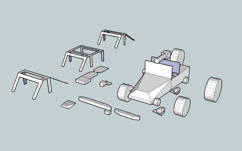 I had some problems initially with sketchup locating some of the more advanced options and sometimes the lack of fine increment control can be annoying but overall it turned out to be a great tool to use for designing the model and I’ll probably stick with it for all future models. With the design process I go through the scale of the object in sketchup is unimportant but the size and proportions of the objects on the model had to be correct. Also with grouping you can easily scale things up and down in sketchup if needed and once I was happy with the design I scaled it down to what I thought would be good size. After a few aborted designs I ended up with the below (This is exploded into parts):