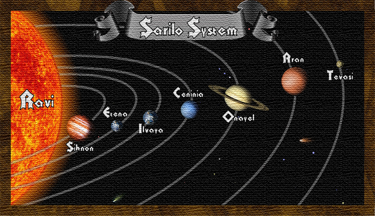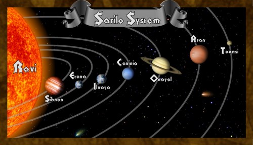 Don’t get to hung up on how far an AU is. Just be aware a good range for Terrestrial (Earth like) planets is approximately 0.8 AU’s to 2 AU’s. Earth in our Solar System sits at 1 AU from the sun, Pluto hangs way out at 39 AU and Mercury at a toasty .4 AU’s. Now Assign each planet an AU Distance from the Solar System Star. The planets don’t have to be as spread out as much as our Solar System but do be aware big planets to close to each other could in reality have interesting effects on each others orbits, Feel free to play around with this Solar System builder. I punched in an approximation of the Sarilo System and ran it for a 100000 years (about 4-5 days) with no problem. It’s interesting to try to create a stable solar system with one planet on an elliptical orbit that doesn’t wipe out your other planets, I have no idea why a comet hasn’t run into Earth yet :).