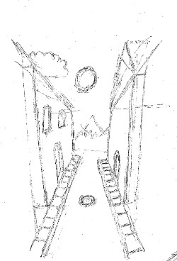 Here are some of my doodles none of these took me longer than 1-2 minutes to do so there not exactly the 3 day master piece. I figure any practice is better than no practice so I fit in drawing when and where I can. I seem to have less problems drawing solid geometric shapes and architectural type stuff, organics still cause me heaps of problems and heads/faces/hair are a nightmare. On with the embarrassing pictures: