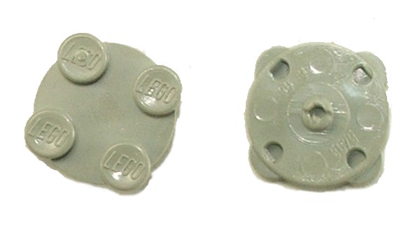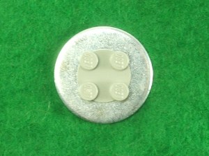 So I started to look around what could I use to make nice bases. Washes come in a nice 25mm size (25mm/1inch diameter) with a hole in the middle, are cheap (10-15c) and heavy, I thought I could simply bond a flat plate of lego over the hole (Yes, glue a piece of lego permanently to something hence destroying it forever, my lego protective gene had issues with this to, however my need was to great). It was partial success the flat plate caused to much of an increase in height and looked very glued on. Hunting around Bricklink I found the below part which is the top part of 2×2 turntable part no 3679, even better you can get them for around 1-3 cents each and they are very thin vertically: