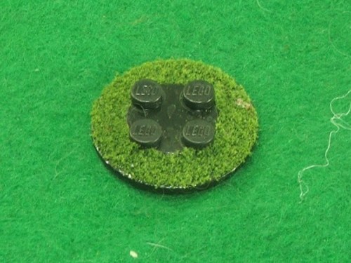 I quiet literally have heaps of flock laying around and just grabbed some green flock to use, but you could use sand or any other standard wargaming basing technique just make sure your Lego interface piece (3679) stays free of flock/sand and other bits of decoration: