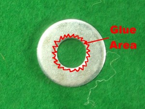 Now the process of actually creating the bases is fairly simple. Grab 1 of your 25mm washers (1 inch), next grab 1 x 3679 (the above part), take a small dob of 2 part epoxy glue and place it around the outside of the inner washer hole (Araldite or some other brand, I find the 5min stuff best and use a cheap no-name brand from the $2 shop not like anyone’s ever going to see it):