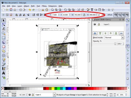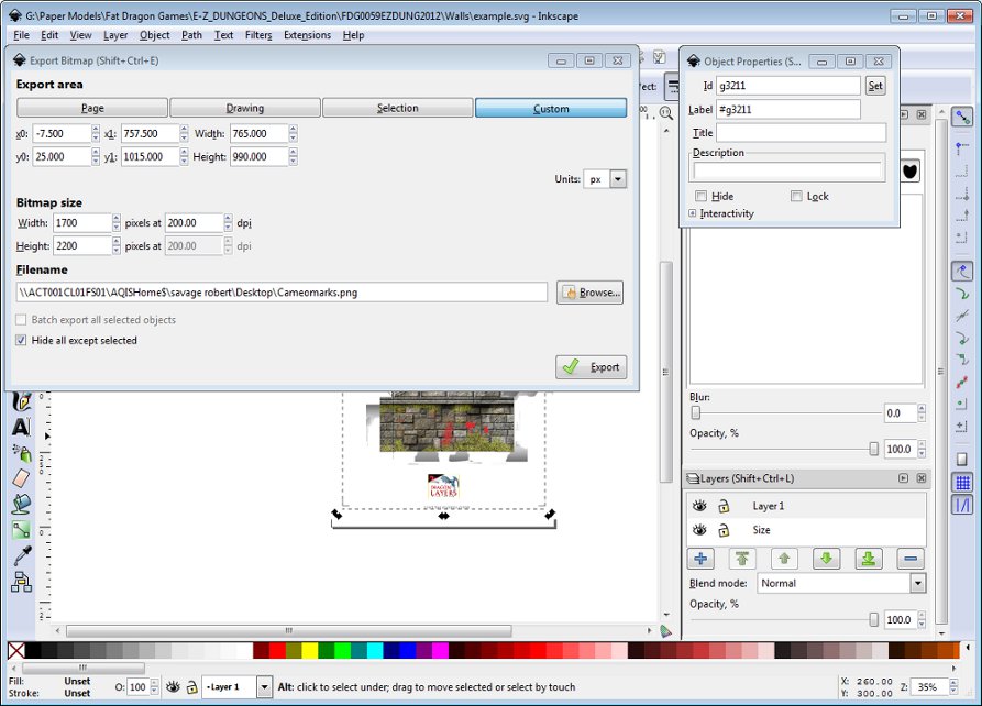 Fat Dragon Games (Tom Tullis) – Imports fairly normally with each layer as an object these tend to be grouped in one group. However each object has it’s own custom size requiring you to set a custom size on export to facilitate easy importing to GIMP and retain the relative X,Y location of the layers.