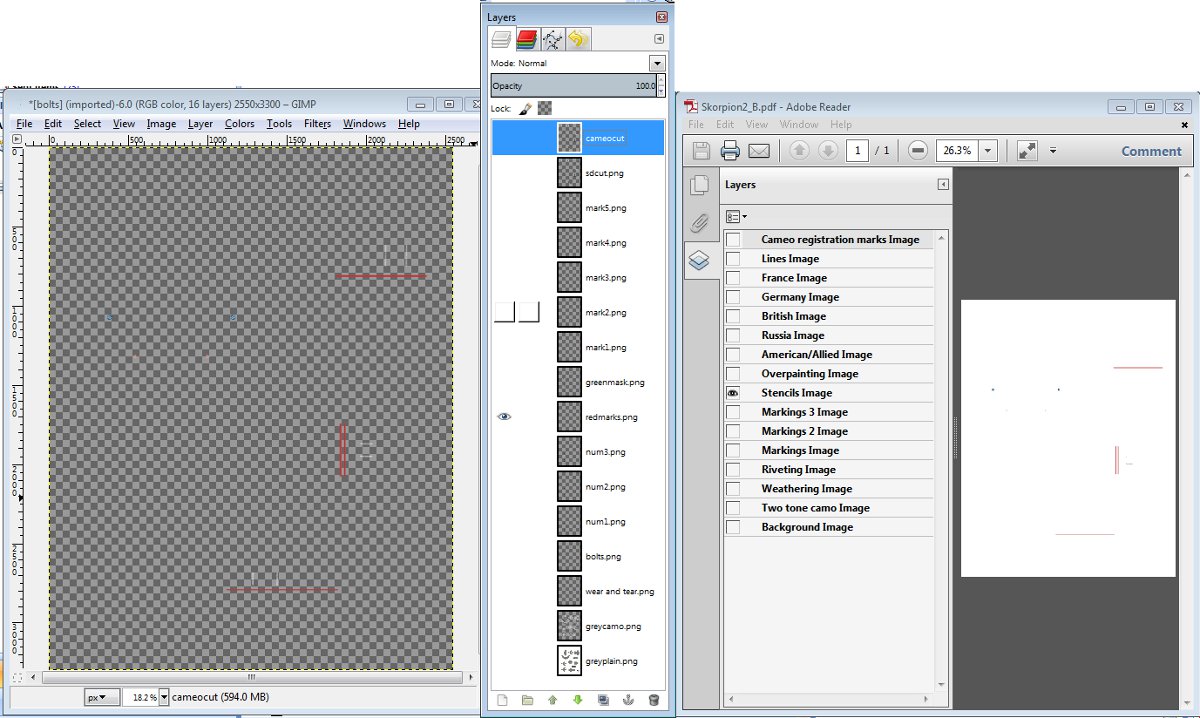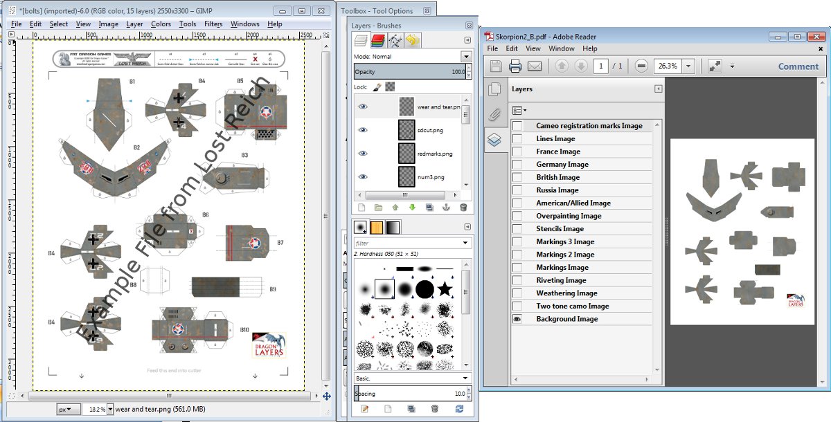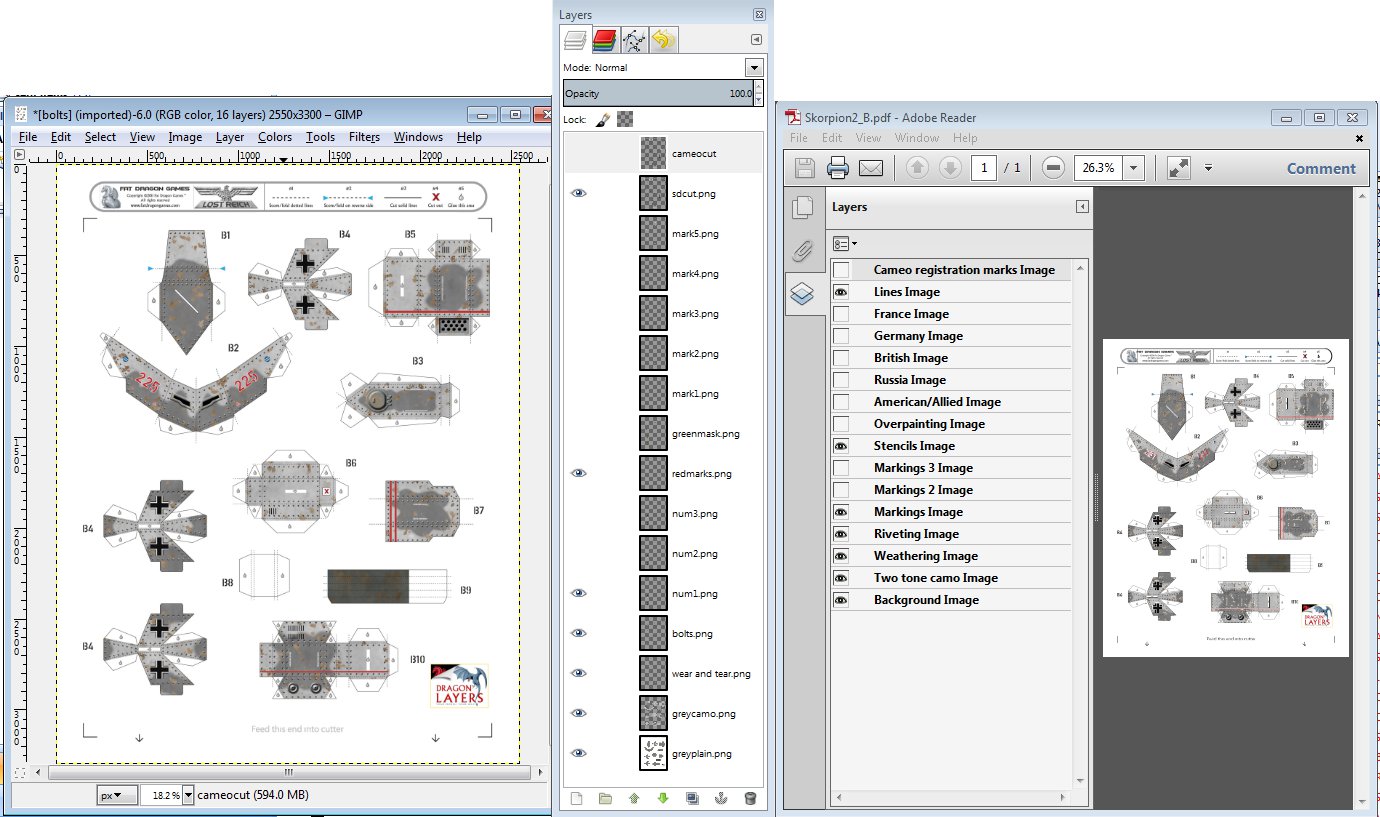 - You end up with your own copy of the “layered” PDF (okay now an XCF file) in GIMP so adding a new layer in the right order results in easier modding. Eg On a Lost Reich Mech I could add a new bullet hole layer above or below the dirt and grim layer to show old and new bullet holes.