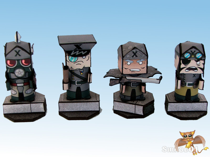 Nothing much to mention in the assembly of Four Black X commanders for Flipit. Hanz Gewehr, Gunter Donnerfaust, Muttonschnitzel and Hauptmann all go together fairly easily. Donnerfausts claw and Hauptmanns crop were a little fiddly but this will have been because I’m building at 75% of full size.