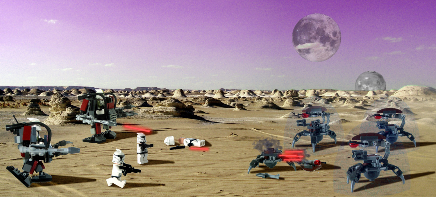 I see it as having started as a simple power loader with a couple of large overpowered hands. Then in frustration a clone commander having been pinned down by Droidekas, quickly bolted a combination anti-vehicle heavy blaster and light blaster to the right arm and equipped the hand on the left with a nasty set of claws. With this heavy armament it can punch through a Droideka’s shield easily while remaining small enough to provide support for a unit of Clone troopers in very close quarters. Due to the short legs they are relatively slow but this doesn’t cause major problems as they can easily move twice as fast as a running clone trooper.