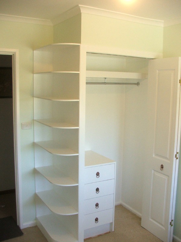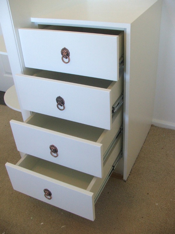 The draw unit in the cupboard is actual a flatpack kitchen draw set, unfortunately I had to hand cut all the draw face plates and build a box to slide the unit into. It does work very well and the kitchen draw slides are much more robust than what you normally find in wardrobes so hopefully I wont have a problem with the draws for a long time.