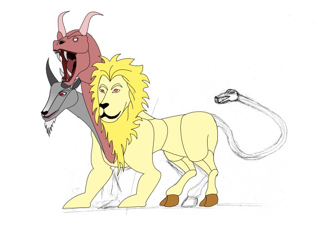 I decided to try my hand and designing a chimera paper standee. I just about bite of more than I could chew :). The chimera is really four different critters all rolled into one and I struggled a lot with drawing the lion and dragon parts of the chimera. Before I started drawing the Chimera I hunted around the net for some inspiration in the end I used this picture along with D&D Chimera mini and picture in the 4ed monster manual to provide inspiration.